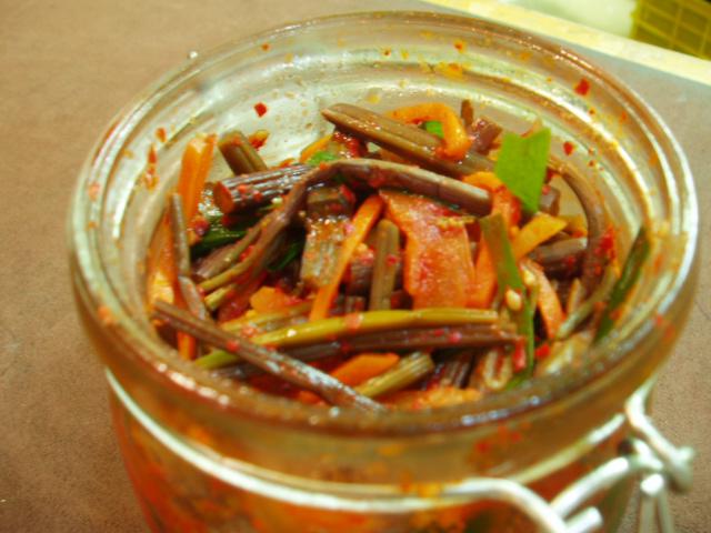 山菜シーズンまっただ中!お酒のつまみにいかがですか「わらびキムチ」本場の方が作るこのキムチ、何気に置いてみたら以外や以外。売れてます。辛さの中にコクがあり、口あきしない美味しさ。そして値段もリーズナブル。一度お試しあれ。