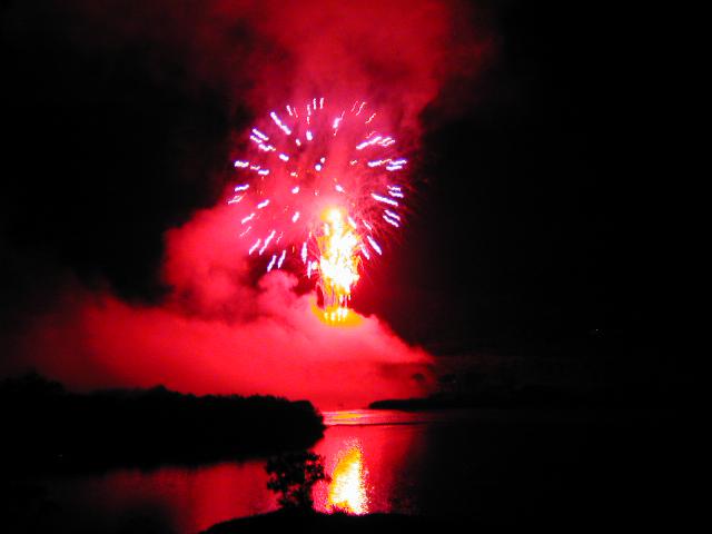 夕方からの局地的な大雨、あきらめかけた15分前、雨がからっとやみました。予定通りの打ち上げにスタッフもお客様もほっとひと安心。夏の一夜を楽しんでます。