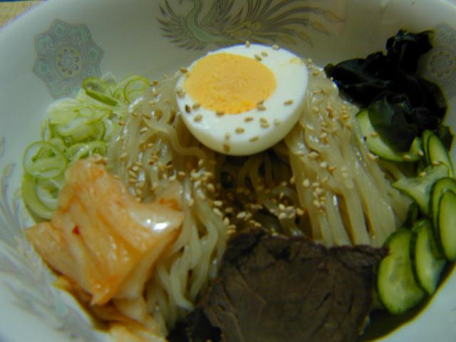 今晩のまかないです。今日はちょっと季節はずれの冷麺でした。でも、みんなで食べるのが美味しいのです。(^^)