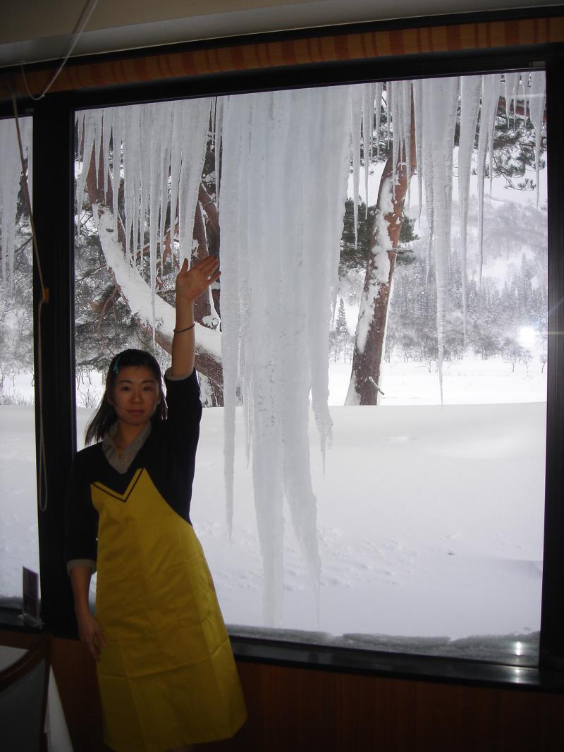 ちなみに、このつららは、レストランの窓から眺められるもの。