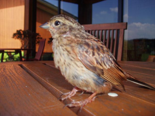 鳥の名前は分かりませんがテーブルの上からまったく逃げずに
