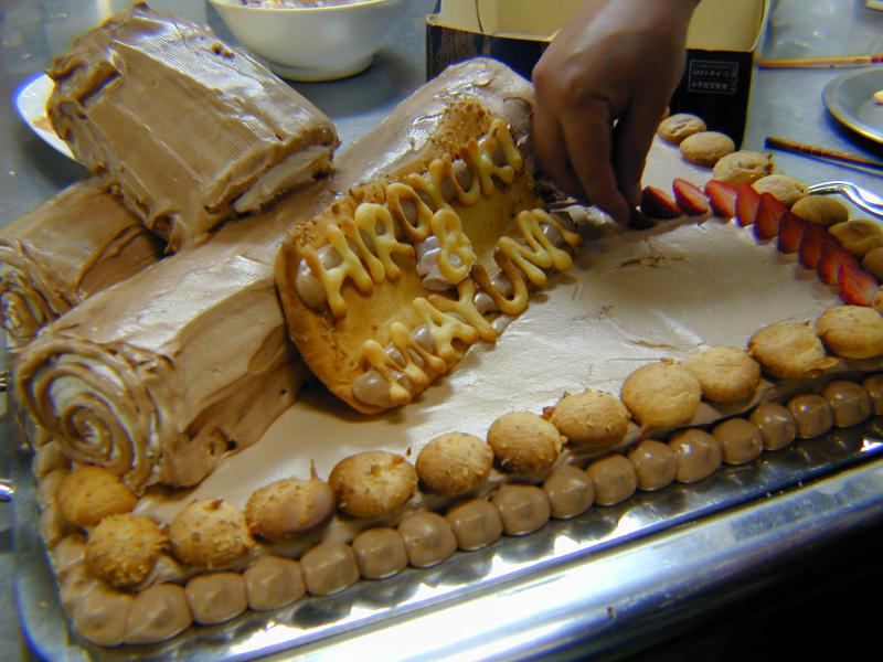今日は結婚披露パーティーの日。現在深夜1時。料理長自ら一人でせっせと本日のウェディングケーキを作っていました。小さな宿だから出来る小さなおもてなし。私達はその様子を見守りながら片隅でつまみ食いの真っ最中でした。