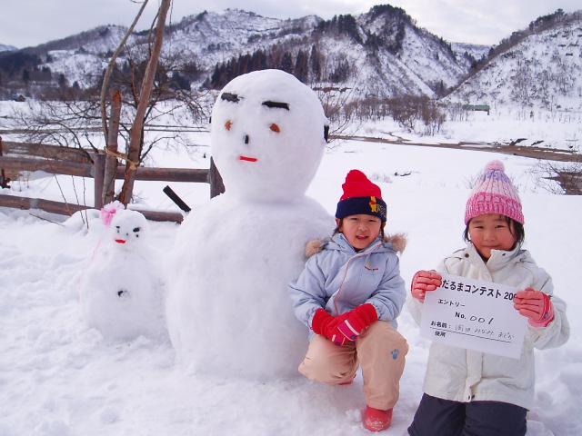 誰でも参加できるゆきだるまコンテストを開催いたしております。フォレストまでお越しいただかなくても作ったゆきだるまの写真をメールで送っていただいてもご参加いただけます。豪華賞品も多数用意しておりますので皆さん是非、是非ご参加下さい。なお、結果発表は3月末頃になります。