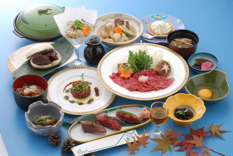 ホテル フォレストいいでのオススメお料理としてこの度”いいで牛づくし膳”をが完成。ここ飯豊町は米沢牛の生産地。地元田中畜産さんのご好意によりお得な価格で皆様にご提供する事ができました。若い和食・洋食の料理人が試行錯誤しながらいいで牛にこだわった料理をご堪能下さい。お得といえどもこちらのお膳8400円。ご宿泊の場合は13500円(休前日は1500円増し)となっております。外で召し上がるよりは大変お得かと....。もちろん手作り。