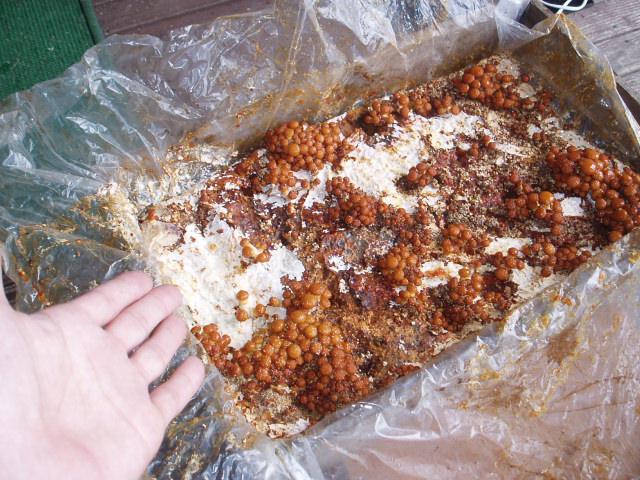 秋の売店売れ筋商品なめこ栽培セットのなめこがようやく顔を出しました。今年は雨が少ないせいかきのこの出が今一つです。お店に並んでいるキノコははたしてどんな風に出ているのか?自分で育てる楽しみも味わってもらいたいと思い販売した所、今年は50箱ぐらい売れ、プチヒット商品となりました。販売したものの、お買い求め頂いた皆様の状況はいかに...と心配致しておりますが、ようやく秋の訪れとともに目を覚ました様です。こんな風に顔を出していますがみなさまの様子はいかが?