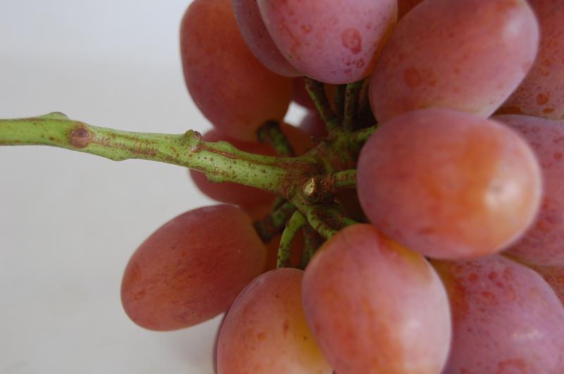 はちきれそうなぶどうの実が、緑色のつるに