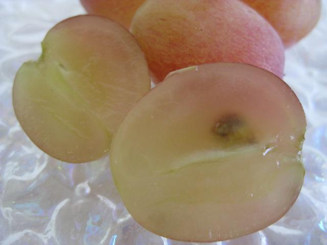 赤嶺(せきれい)は、甲斐路の早熟着色系枝変わり品種のぶどうです。極甘の赤嶺はサクサク感のある歯ごたえで、上品な甘さをたのしめます。