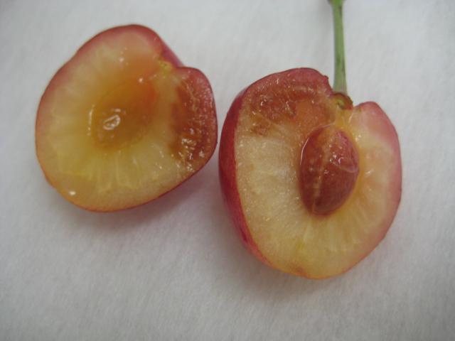 缶詰用は少々赤くなった頃に収穫されます。生食用には、真っ赤に色づき完熟すると、佐藤錦にも勝とも劣らない甘酸のバランスのとれた美味になります。
