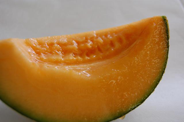 赤肉メロンの新しい品種。オレンジ色の果肉の厚さが、従来の品種に比べてたっぷりとあります。