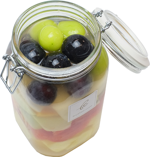 フレッシュカットしたフルーツを小さめのジャーいっぱいに詰め込んでお届けします。