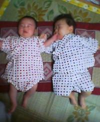 ほたるまつりに豆腐屋の孫海亘君は母に甚平を作ってもらいました。当日仲良し楓ちゃんもママの手作り甚平で遊びにきたんだけど、よく見たら色は違えど柄が同じ!ペアルックでした(^^)v どこまでも仲良しです。