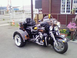毎度で〜す!トライクのお客様が来店しましたぁ!!(トライクとは・・・3輪バイクのことです。しかも公道でもノーヘルOK!普通免許で乗れます。)な・なんと思わず衝動買いしてしまったそうです!!びっくり!血が騒ぎ思わず、借りて走っちゃいました〜最高!!梅雨明けが待ち遠しいですねぇ!安全運転でお願いしますよ!!(^^V