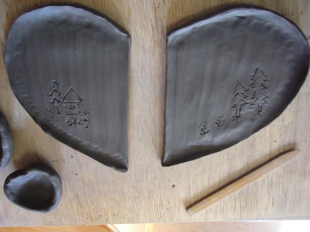 平べったい粘土を自由に加工してお皿を作るってのも体験しました。