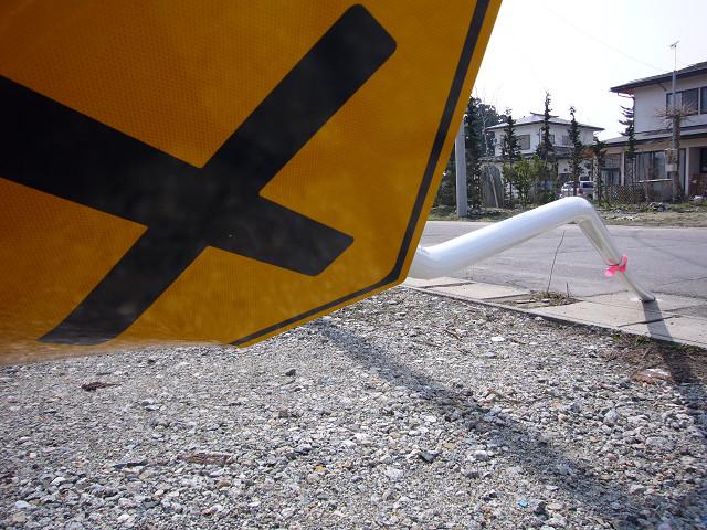 小さい子どもにもこの先が交差点だよっていうことがわかるように、標識を見やすく、倒してみました。
