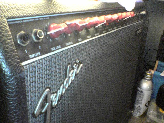 ちなみにこれはフェンダーのなんとかって種類で(わからんのかっ!)50Wのヤツです。中古で2万だったりする(笑)