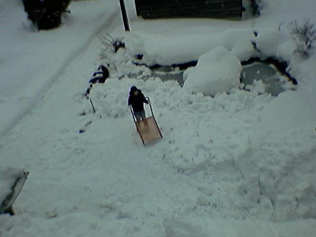 女の子だって頑張ってマス!下の雪払い。あんまどんどん落とすなぁー!って?(笑)