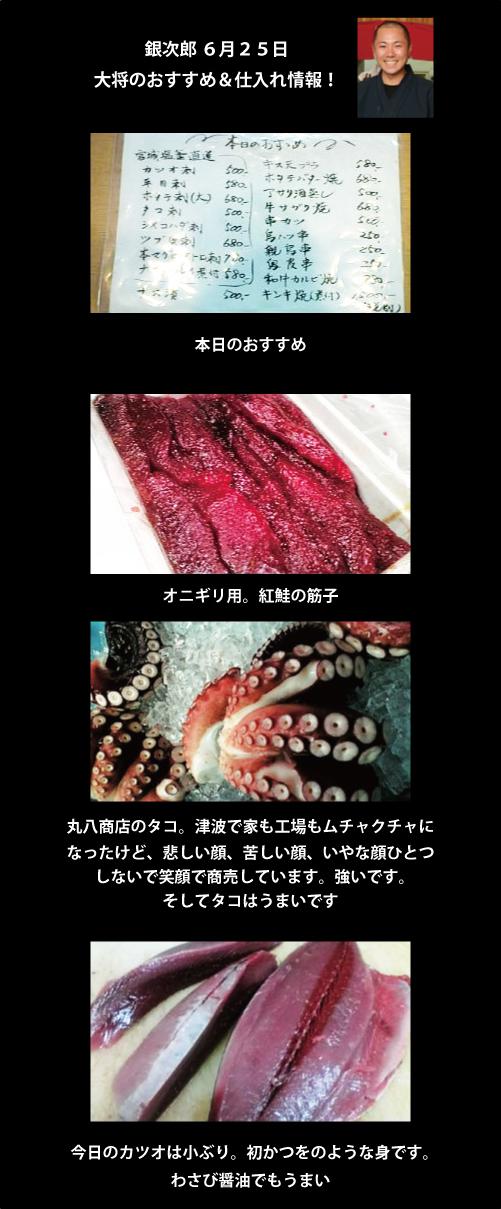 ▼銀次郎 6月25日の仕入れ情報&本日のおすすめ!