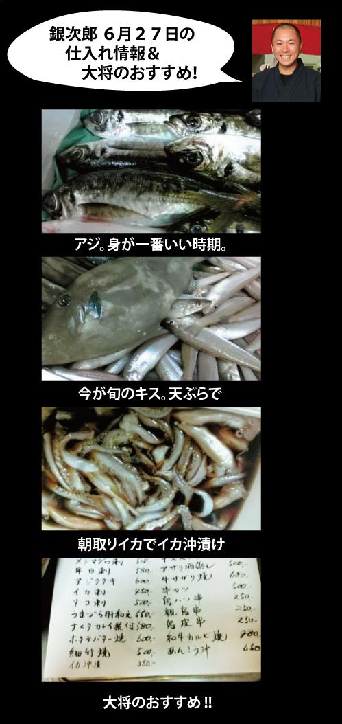 ▼銀次郎 6月27日の仕入れ情報&本日のおすすめ!