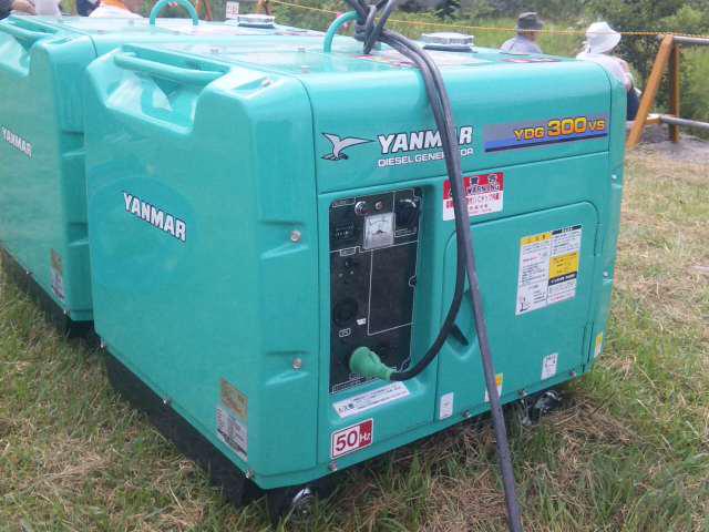 様々なお店が並んでますが、河川敷なんで電源が乏しいようで各店様々な発電機を駆使して営業してるようです。小型の物から中型機、ガソリンにディーゼルといろいろですが、中でも際立ってたのが画像のヤンマー製。とにかく音がびっくりするほど静がで震動も少なめ。よく見てみるとディーゼル機関なんですね。更に感心。橋の上でけたたましい騒音を上げて発電する旧式のガソリンモデルと比べると雲泥の差。