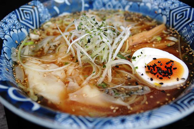 ツルツルのワンタンの中に、たっぷりの胡麻を練り込んだこだわりの具は、特製スープとの相性もバッチリ!
