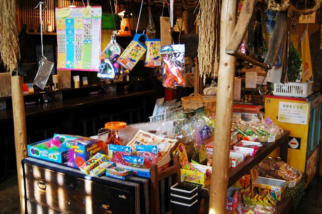 こちらのスペースには、懐かしい駄菓子やおもちゃが並んでいます。