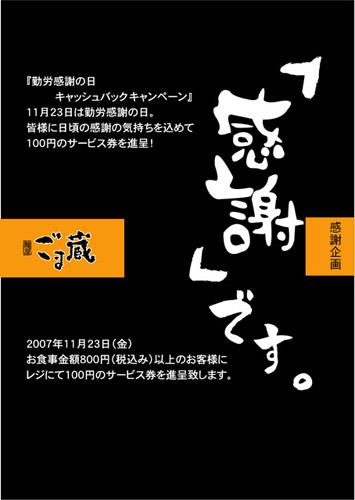 ▼勤労感謝の日〜キャッシュバックキャンペーン