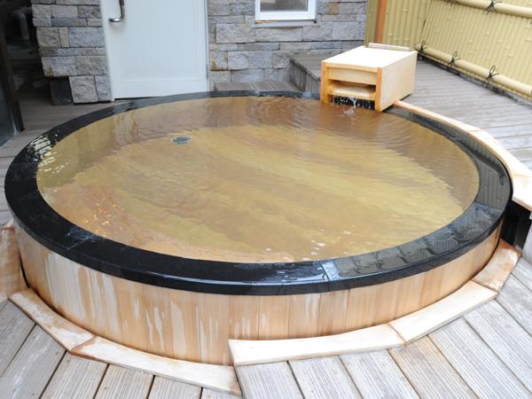 源泉樽風呂が新しくなりました。以前のような樽そのままではなく、湯縁が御影石のお風呂です。外側は青森ひばでできており、2代目は初代よりもかっこよくなっております。