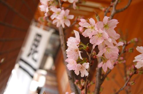 当館玄関前の啓翁桜が