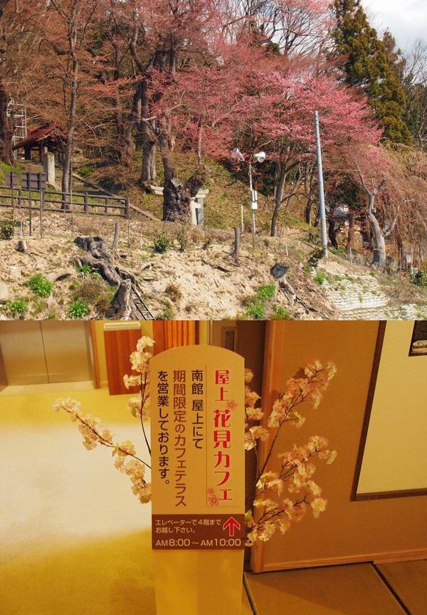 屋上で桜を眺めながらモーニングコーヒーが楽しめる
