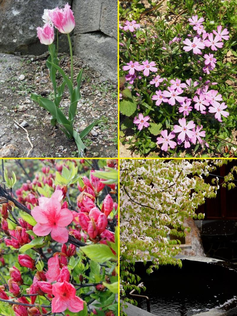 桜の花が終わりを迎え、チューリップやツツジなどの花々が中庭を彩り始めました。