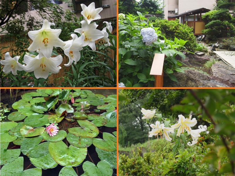 梅雨明けの発表はまだですが、裏の烏帽子山ではミンミンゼミが鳴き始めました。当館の中庭にもオニヤンマやシオカラトンボが飛び、ようやく夏が訪れようとしてます。またユリや桔梗、アジサイ、吾亦紅などの花が、深まる緑に彩りを加えとてもキレイです。