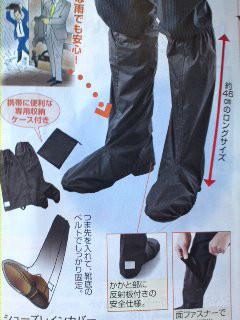写真は急な雨にも安心!靴を履いたまま履く?足元カバーだそうです。