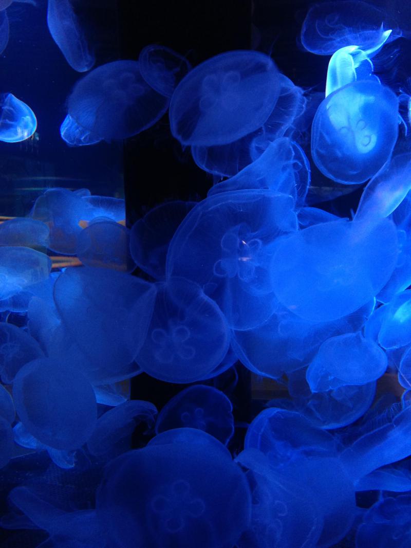 チーク材のような色のフロアに壁は濃いブルーで、これは次の現場の