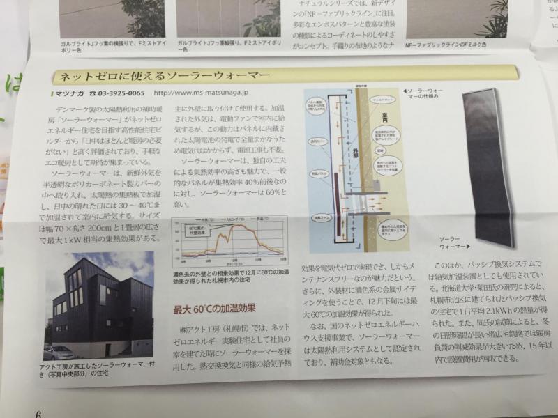 建築新聞で気になった記事に、ソーラーウォーマーという