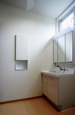 だったら割り切って洗面化粧台の上のスペースを窓にしてしまう