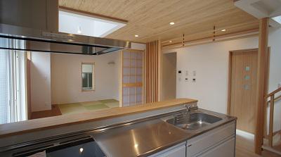 写真のお宅では木製格子も上手に取り入れ、水平方向の