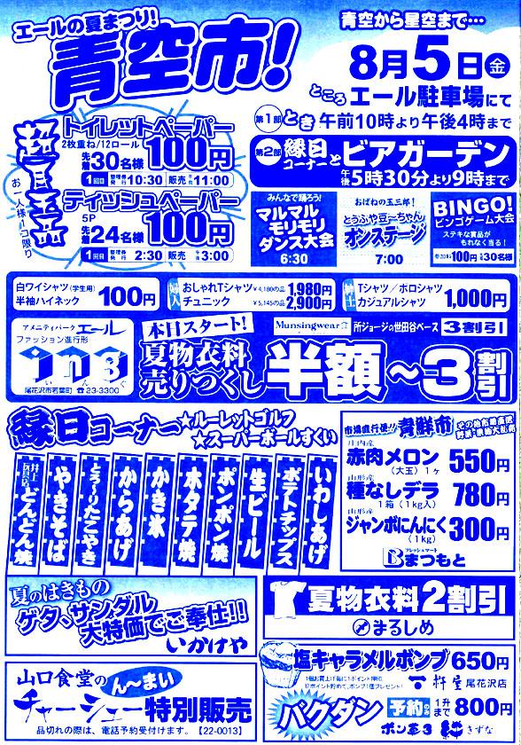 青空市限定の超目玉商品や縁日コーナー、ビアガーデンなどなど…