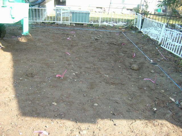 柱状改良工事と言いまして、家の基礎部に沿って地面を筒状に掘削し、そこにセメント系固形溶剤を流し込み地中に柱状の支持体を作っていきます。