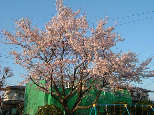 現場の目の前の公園の桜が見事に咲きました!