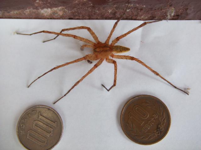 床の色が蜘蛛と同色なので判りずらいかしらんと白い紙を待ってきて蜘蛛を乗せるんですが、明るい色は嫌うらしく(当たり前じゃ)すぐ逃げてしまいます。でも頑張って撮影したわよ♪(ちょっと弱らせた?だけ)こういう事にとても集中力発揮してしまうから変わり者扱いされるのかっ!