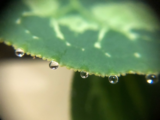 キラキラ光る水滴が何枚もの葉っぱを縁取っていました。