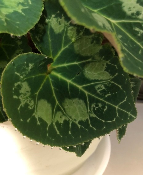 ある朝、シクラメンの葉っぱにつぶつぶが!!