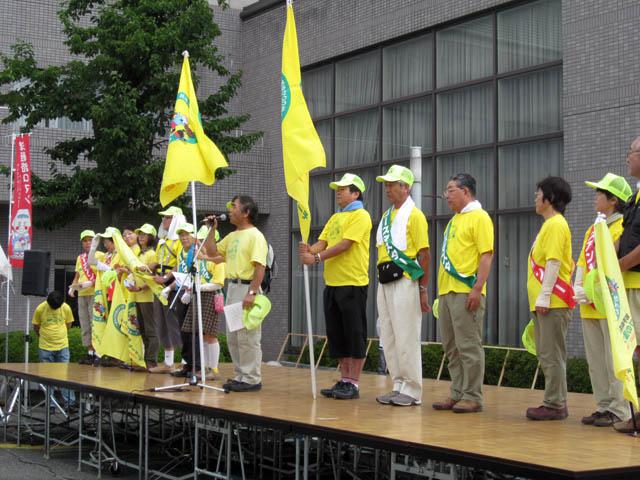 旗手の右側が渡辺仁Bライン特別委員長(ピカット東北)、