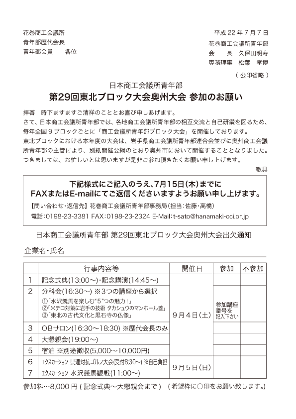 ▼日本商工会議所青年部 第29回東北ブロック大会奥州大会 参加のお願い
