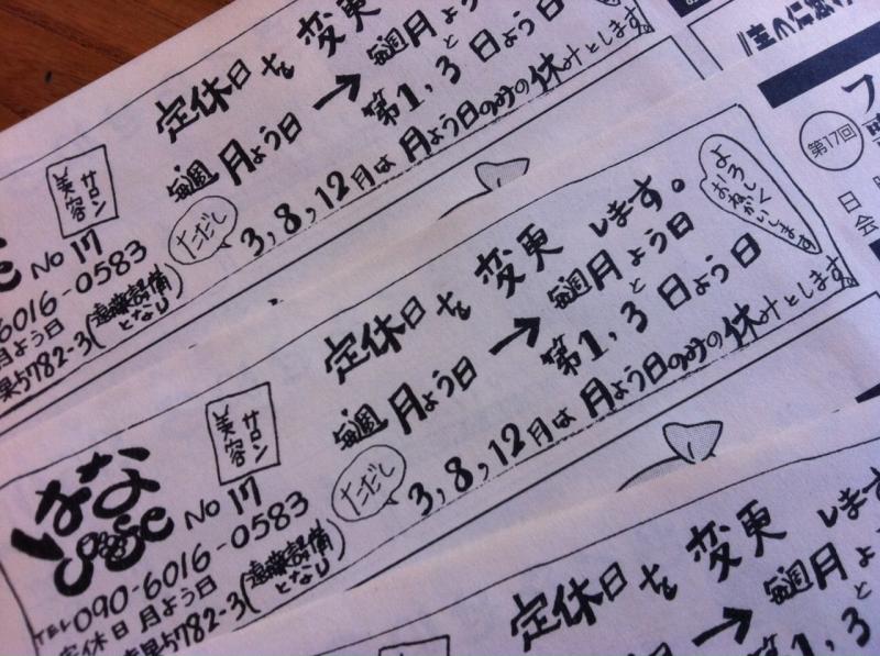 定休日の変更を致します。