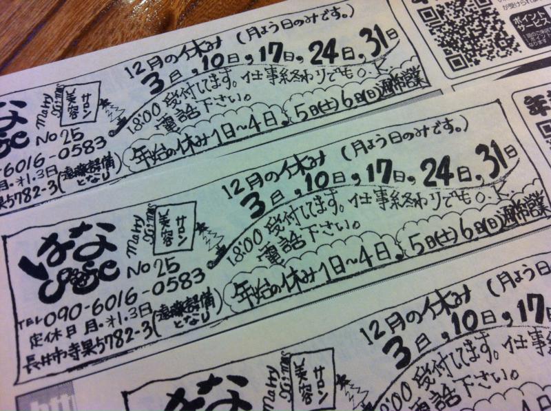12月は忙しくなりますので、第1、3日曜日は休まず営業します。