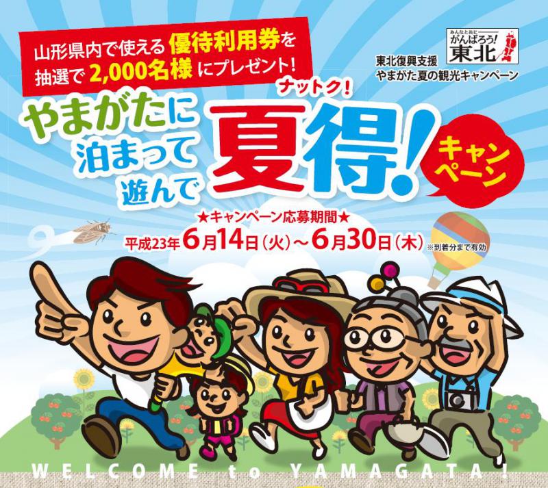 東北復興支援・やまがた夏の観光キャンペーン『やまがたに泊って遊んで夏得(なっとく)!キャンペーン』が始まりました!!