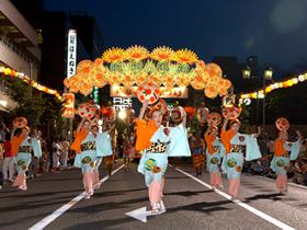 華やかに彩られた山車を先頭に、艶やかな衣装と花笠をあしらった笠を手にした踊り手が、山形市のメインストリートを舞台に踊り歩きます。