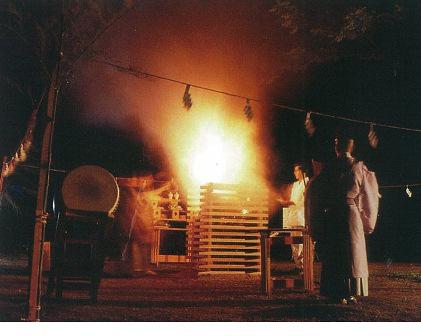 月山志津温泉火合わせ神事かがり火祭りとして