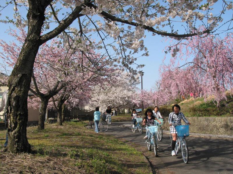 桜並木を楽しみながら、山形交通高畠線の廃線跡を歩き